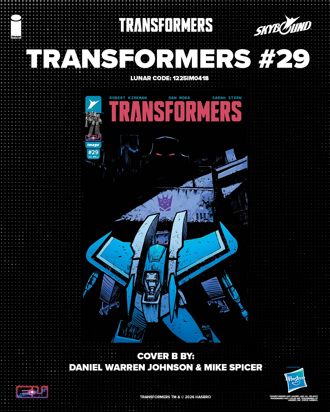 Saudações Cybertronianas! A Skybound/Image Comics divulgou a prévia das 2 primeiras páginas da edição número #29 de Transformers, que será lançada em 11 de Fevereiro/2026.