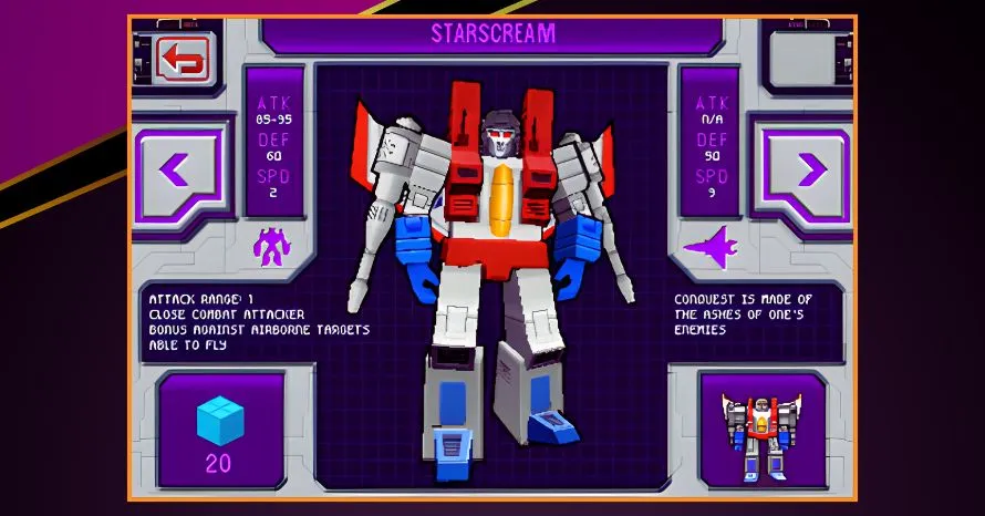 Personagens icônicos como Optimus Prime ofereciam habilidades especiais: o líder Autobot concedia bônus de moral às unidades adjacentes, melhorando seu desempenho em combate.